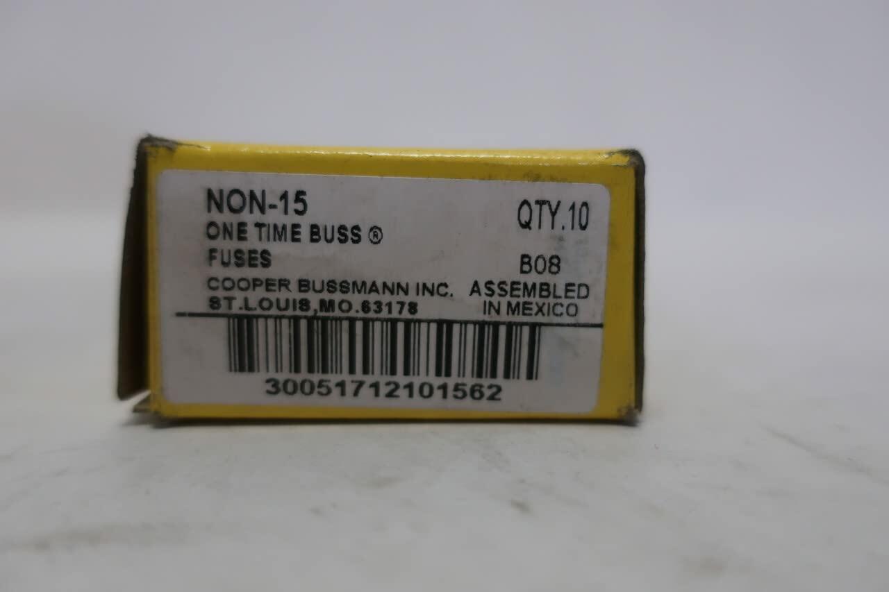 Box of 10 COOPER BUSSMANN NON-15 BUSS K5 15A AMP 250V-AC Cartridge Fuse
