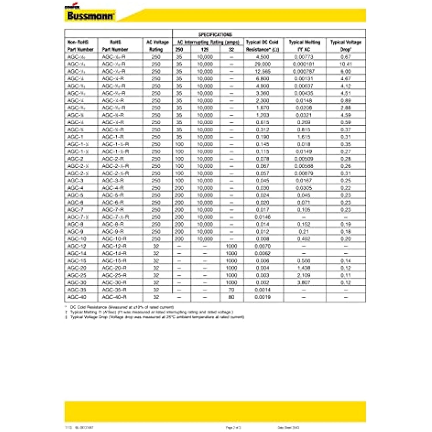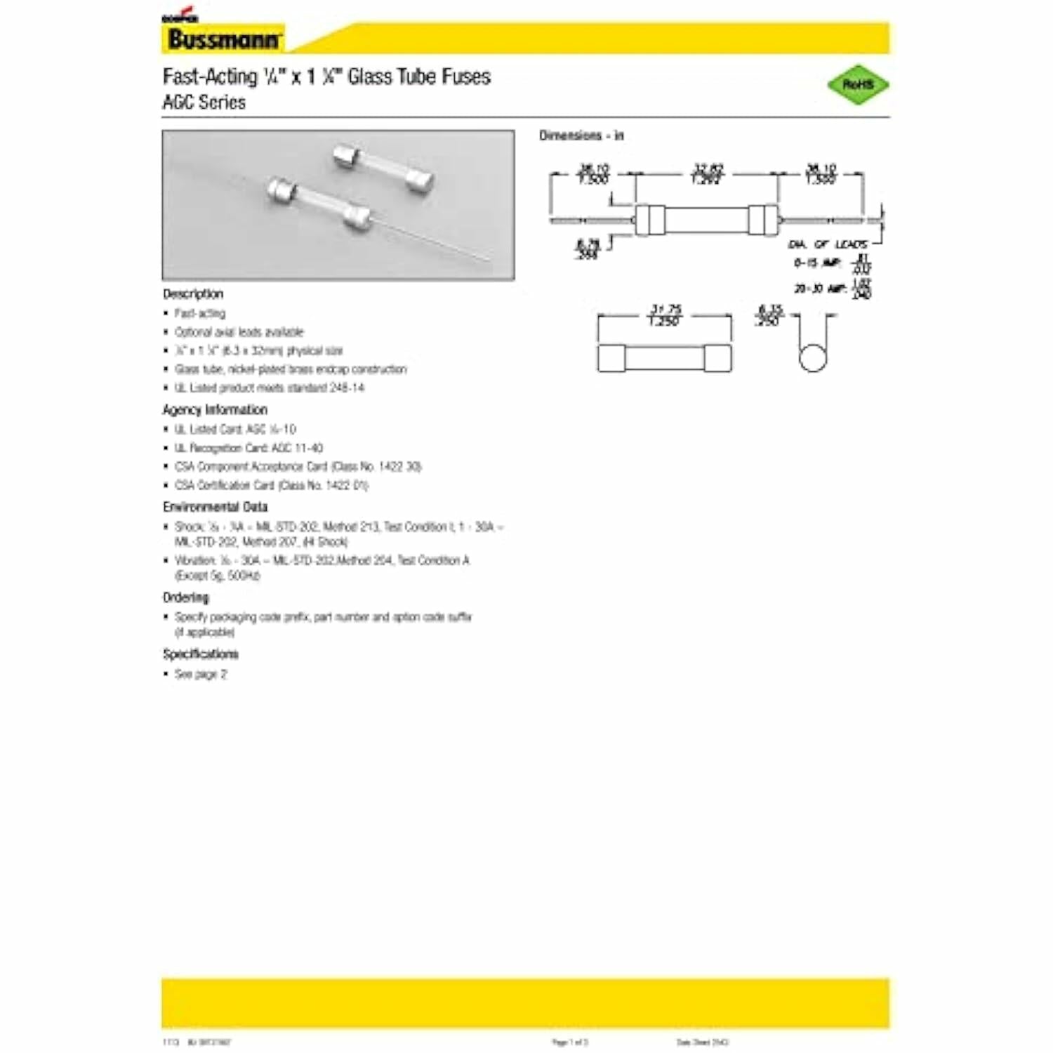 Bussmann AGC-2.5 Cartridge Fuses 250VAC 2.5A Fast Acting (5 Pieces)