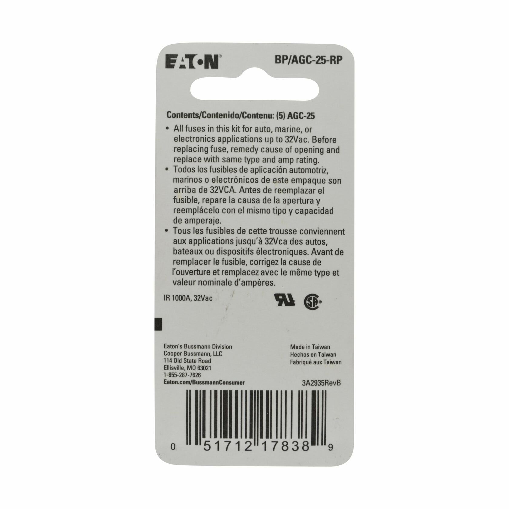 Bussmann BP/AGC-25 25 Amp Fast Acting Glass Tube Fuse