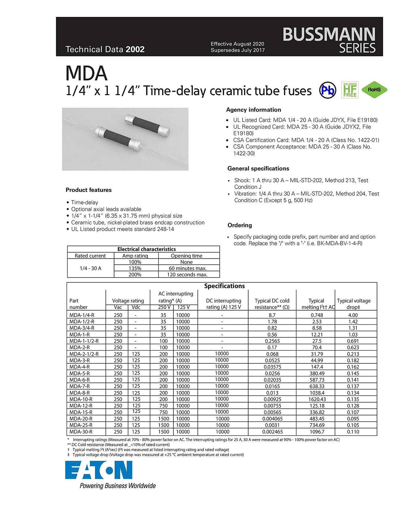 BUSSMANN BPMDL30 Mdl Glass Tube Fuse- Pack - 2