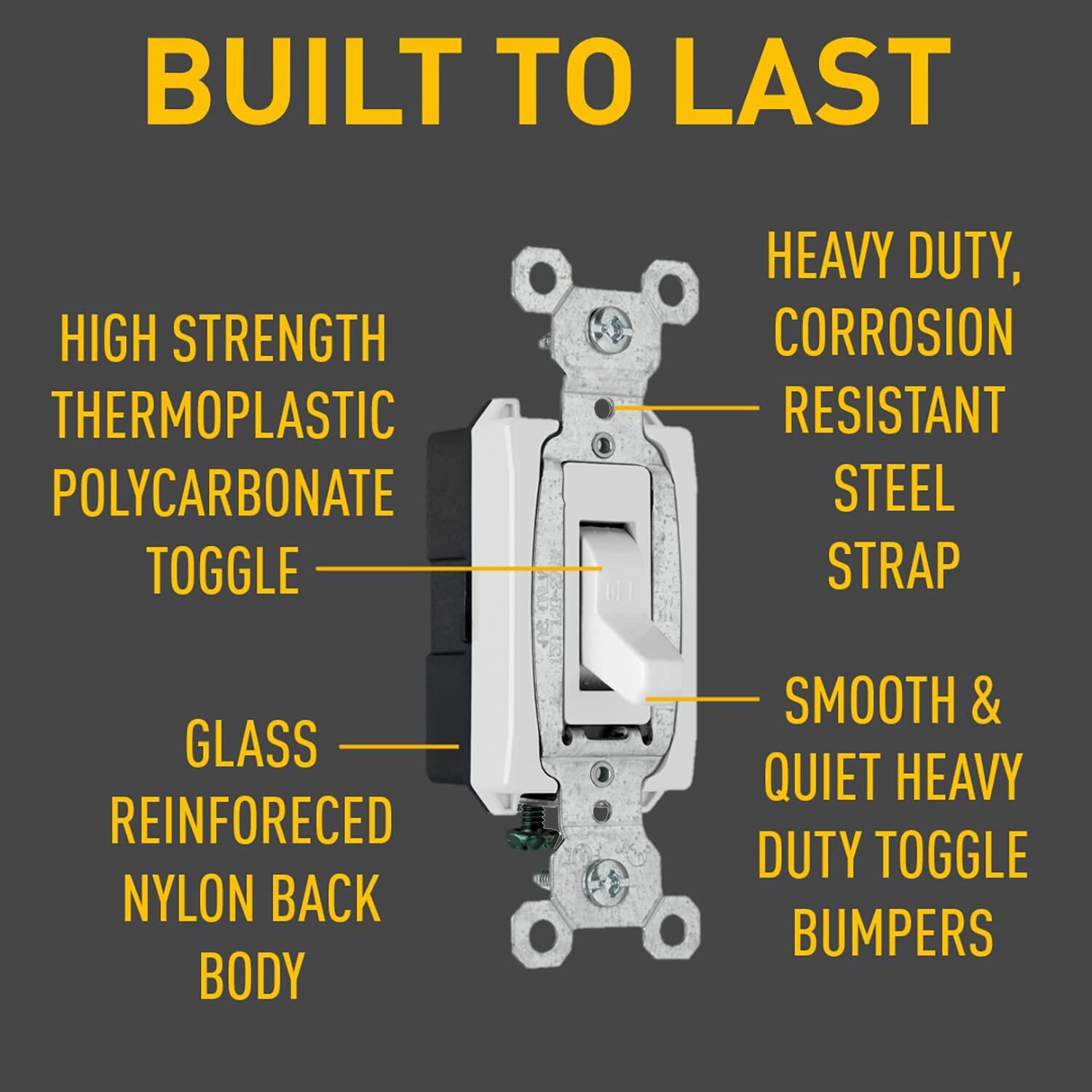 Legrand-Pass & Seymour CS15AC1WCC8 15A 120-volt/277 Voltage Alternating Current Side Wire Commercial Single Pole Switch, White