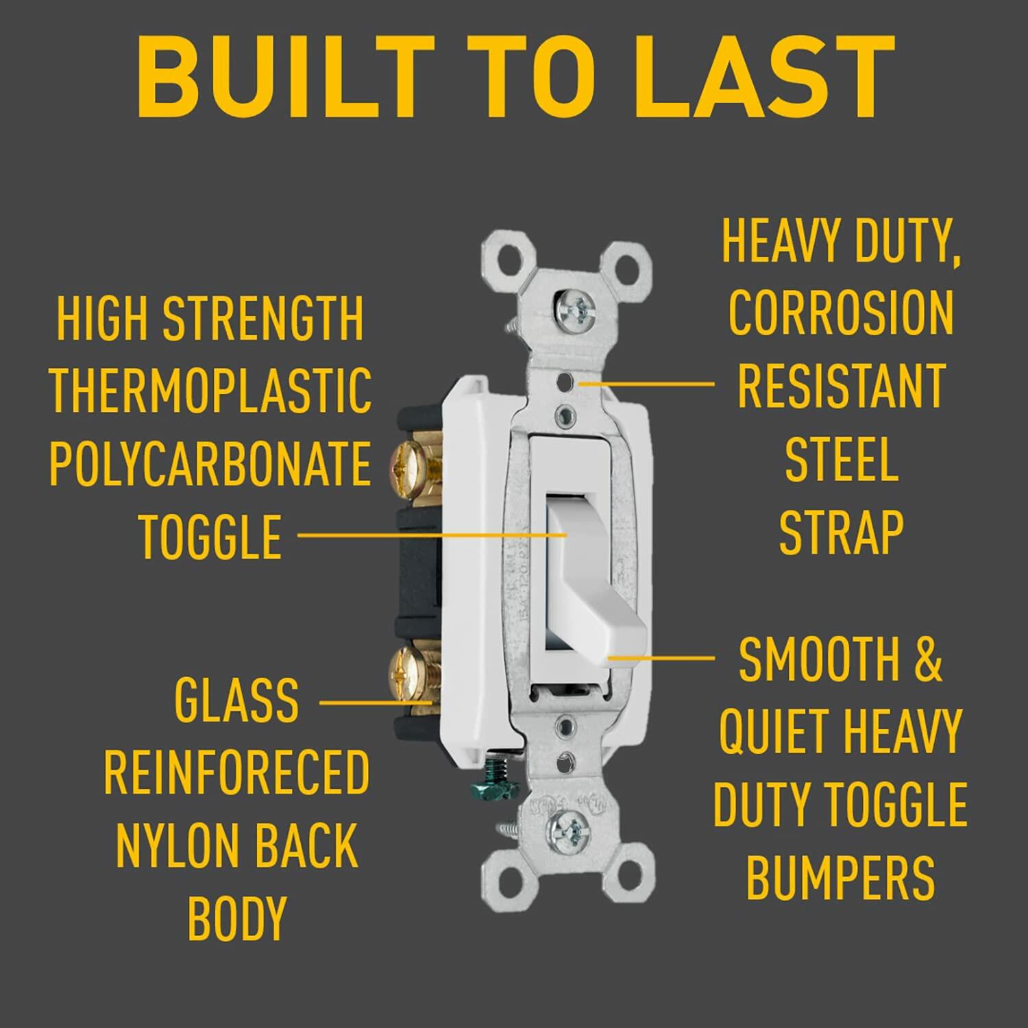 Legrand Pass & Seymour CS15AC3WCC8 15 Amp 120/277V Commercial Specification Grade Toggle Switch, 3-Way, Side Wire, White (1 Count)