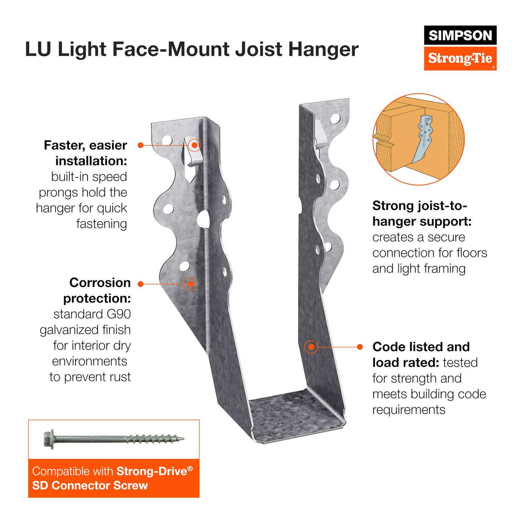Simpson Strong-Tie LU26 Light Face-Mount Joist Hanger - Wood Construction Connectors, 20 Gauge Galvanized Steel Brackets, Hurricane Rafter Ties, 2x6